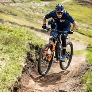 Daszek można dostosować do różnych warunków jazdy, wybierając jedną z trzech pozycji. Zapewnia on ochronę przed słońcem, błotem i deszczem, a jego regulacja pozwala na wygodne dopasowanie do gogli lub okularów przeciwsłonecznych.